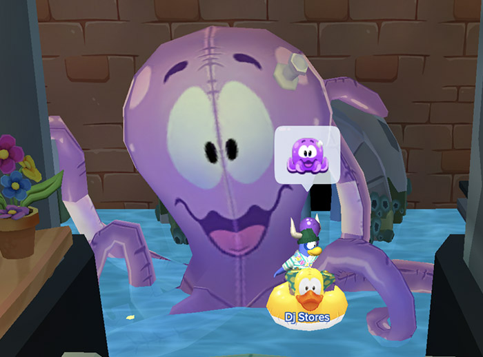 Aunt Arctic tells me that Octi is very welcoming to visitors, although I’ve seen him sometimes be a little too welcoming. Remember penguins, Octi doesn’t stop for anyone so it might be a good idea to stand out of his way if you would rather not become a penguin octopus. I know lots of my friends have been looking to do this glitch, so I hope this helped.