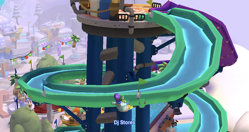 Some of you might’ve seen penguins hanging out in the snowy area in front of the Splashdown water park. Want to be one of the cool penguins chilling and exploring there? We’ve got two different ways of getting to this secret place perfect for a party. The first way was shown to me by 1Constance1, and it’s an extension of the bouncy blob glitch to get to the tropical cloud above. Here’s how it’s done.