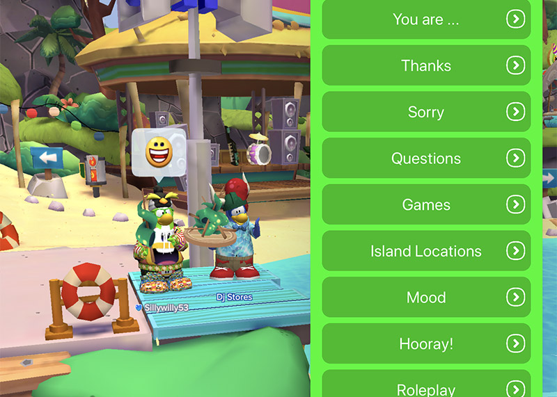 It’s easy to use Silly’s Safe Chat. Choose a phrase from 17 category menus to copy, and paste it into Club Penguin Island. There’s so many to choose from, it’s simple to find a quick phrase for almost everything.