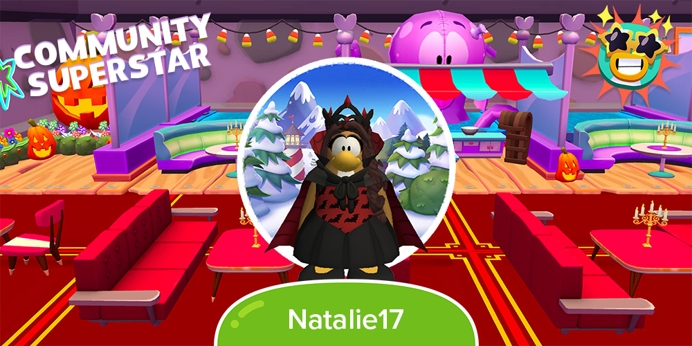 I would like to nominate Nat (Natalie17)! I have only been lucky enough to know her for a little bit but she has always been friendly and sweet whenever we have talked! Her igloos are pretty cool, she has recreated the underground sewer restaurant (and decorated it for Halloween as well!) which is a pretty fun place to hang out that she’s made! I feel I can speak for everyone that she would be a good choice for Community Superstar! :D