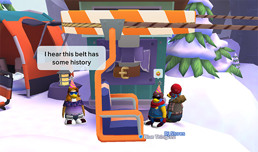 Penguins who’ve been waddling around for a very long time (around 7 years!) will remember that in an old EPF DS game, the Ski Lift in classic Club Penguin wasn’t working. The solution? Use a belt to power the entire thing! It looks like this little detail from our old game and its spin-off games has made its way to our brand new Island. I wonder if it’s the same belt?