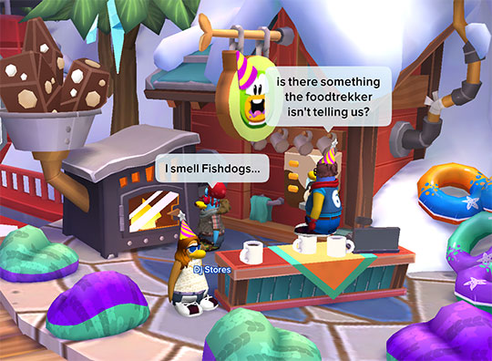 While sitting down for a Hot Cocoa break from all of this exploring, I waddled on over to the oven and smelt… Fishdogs! This leads to yet more mysterious myths and theories. Does the Foodtrekker secretly prepare all of its Fishdogs from frozen at Mt. Blizzard before transporting them with Crate Co super-fast crate shipping? Seems legit to me.