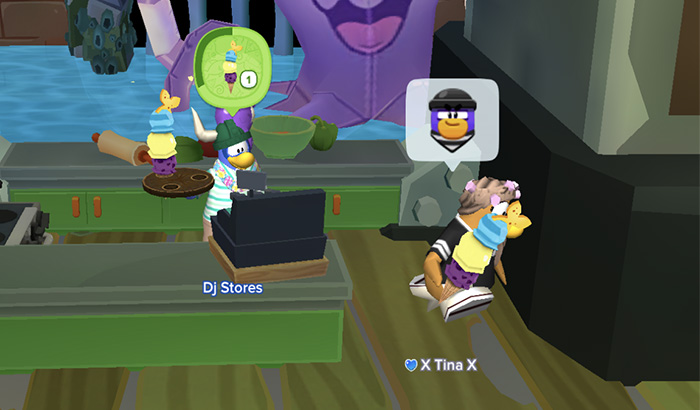 Reports have been coming in from all over the Island of a penguin robbing vendors at the Splashdown of their precious Fro-Yo supplies in broad daylight. The culprit’s name? Tuna. You may remember when Tuna was caught stealing Rainbow Smoothies from Madzom8ie’s stall back in February. Well, penguins, she’s back. Although food on the Island is often served for free, Octi’s Diner asks for payment by check… it. Check it. Yes, that Quick Chat action is now a currency.