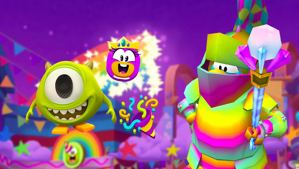 Hear ye, hear ye! Just kidding… hey, penguin pals! The Rainbow Celebration arrives in the next Club Penguin Island update later this week. With rainbow items, catalog challenges, collectibles and more – this party is certain to turn the community colourful! A party like this doesn’t come together overnight. In fact, did you know a knight made it all happen?