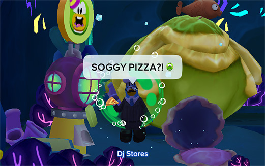 One day, Mr. Foodtrekker became very hungry for a simple slice of pizza but, much to his dismay, the Welcome Shop had all sold out and only had plain bread rolls left to eat (boring!), the SS Convenience couldn’t find a single slice of pizza in amongst their hoards of Squid Sticks and soggy pizza from the Deep Sea Shop just wasn’t his cup of hot cocoa.
