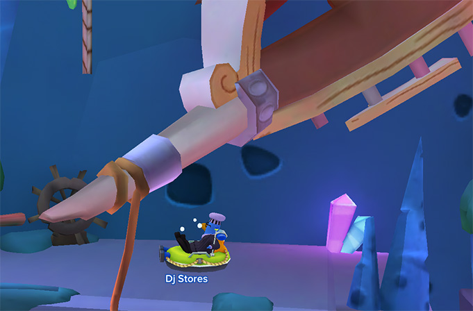 Without a moment to lose, Mr. Foodtrekker hopped on his tube and, eventually, made it to the Sea Caves where he discovered a gigantic ship embedded within the wall. Was this what carried 11 years of artefacts before it catastrophically sank? Mr. Foodtrekker had questions, and word on the Boardwalk was that a wise squid had all the answers…