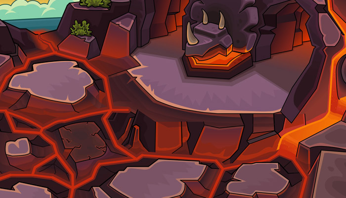 It’s a place with lots of water. Simple, right? At the Big Water Place, there was a prehistoric throne and a few living spaces, along with a lava flow from the volcano. I tried to recreate the stone tower in my igloo, but with a trampoline instead of steps. I’ve included volcanoes in the water and added flat stones to the sand. Architecture back in the very early days of Club Penguin was very impressive.