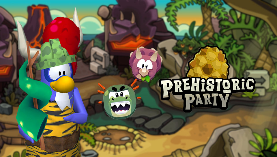 Hi penguin family! Today we’re taking a trip in the Time Trekker 3000 back to the past, and I mean way back to the past. In January 2013, 2014 and 2016, penguins visited Club Penguin from millions of years ago during the Prehistoric Party! Here’s some history for why we travelled back to the age of stone, dinosaurs and square pizza.